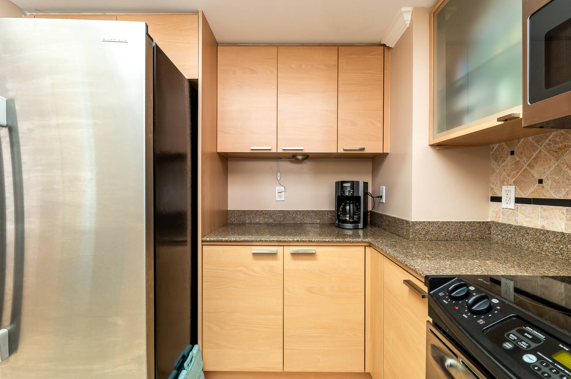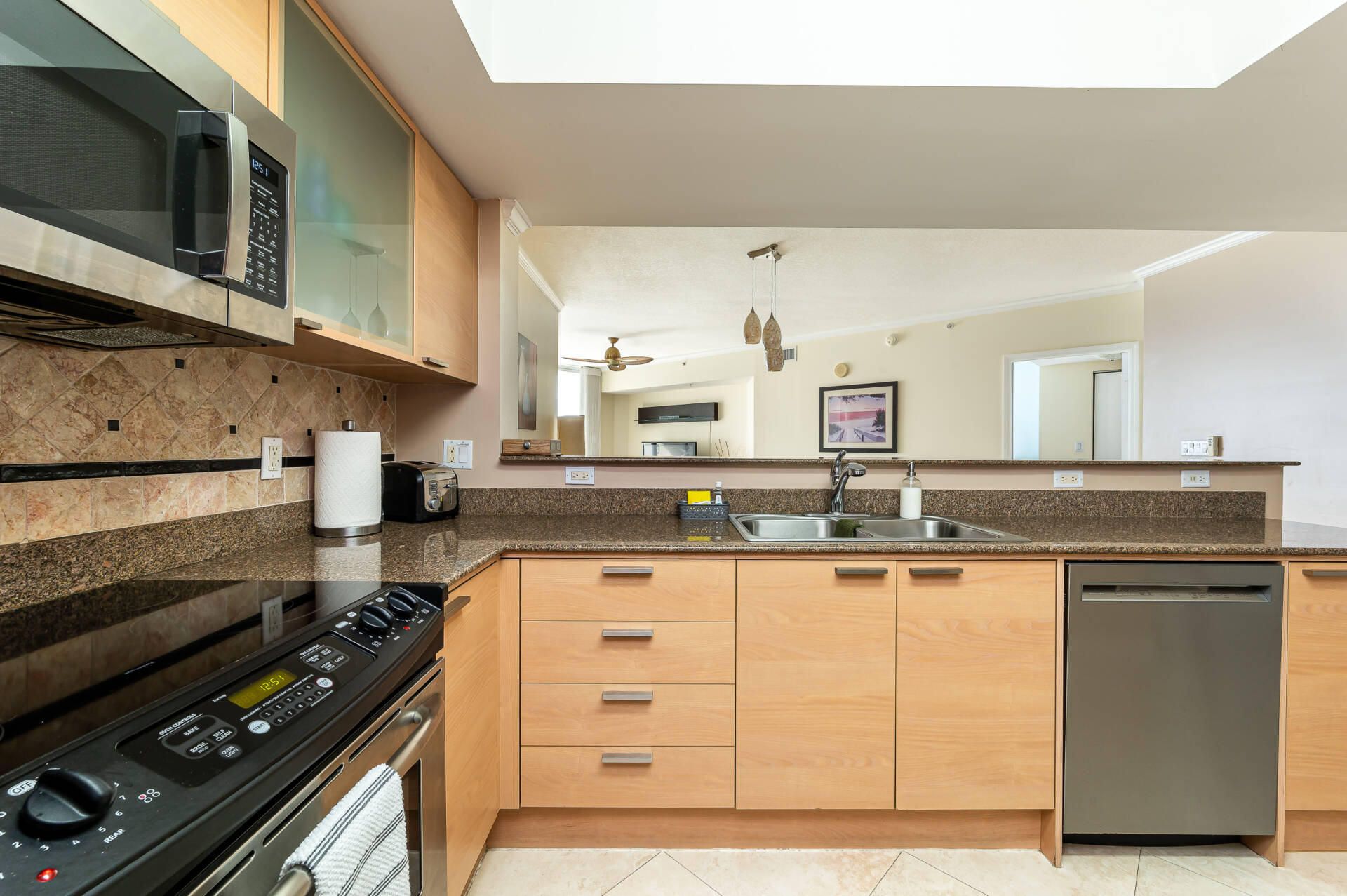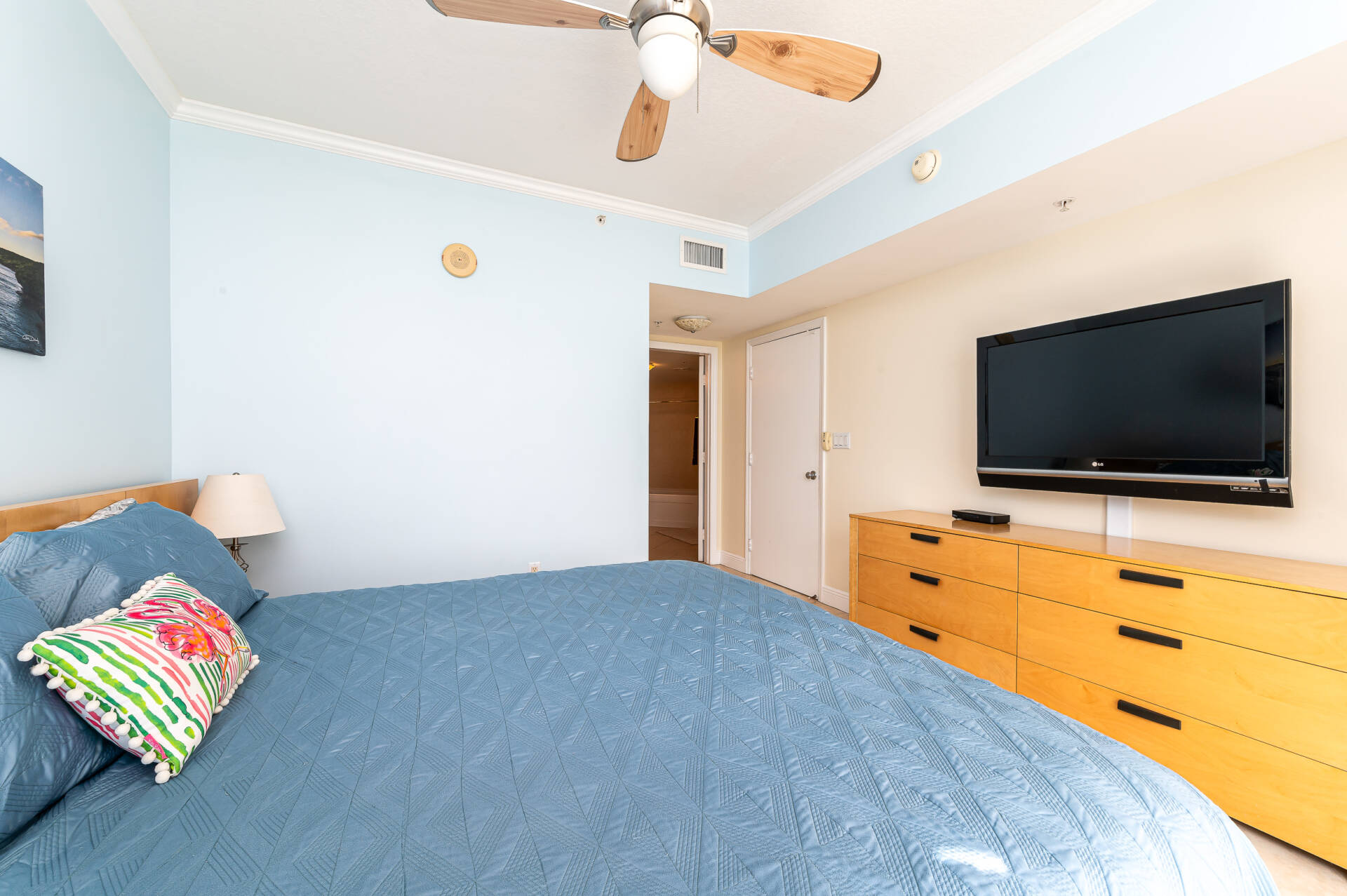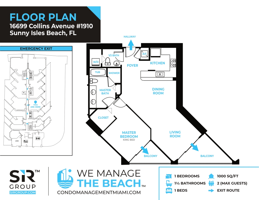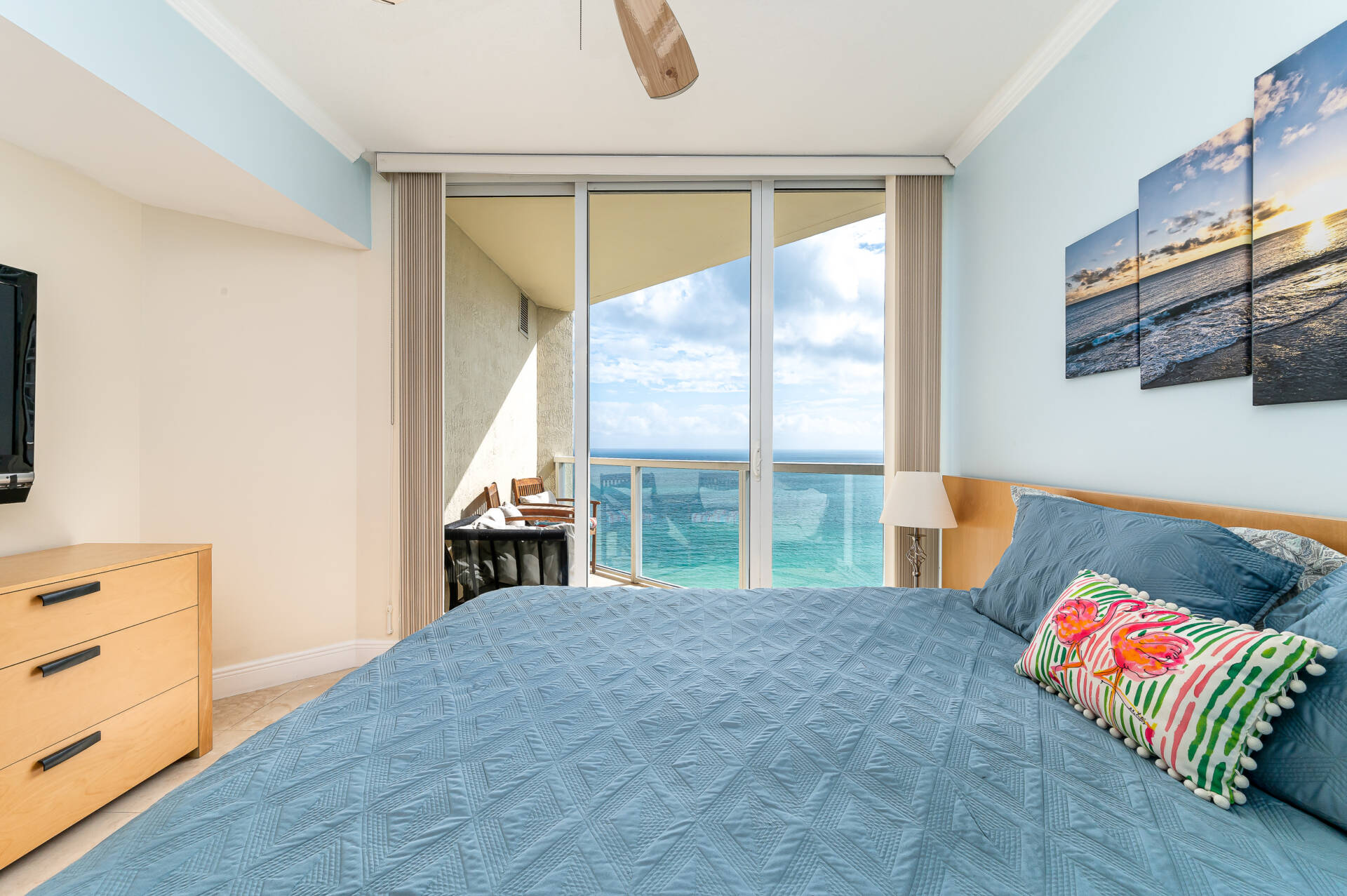 Perfect floor height and amazing ocean views! Stunning 1 bedroom residence with surreal ocean & city views! Very spacious layout with 1000 sq/ft plus 2 private balconies. The kitchen features stainless steel appliances, granite countertops, & is fully equipped for all your cooking needs. Master bedroom offers a king bed, cable TV, walk in closet, and on suite bathroom. WiFi & washer/dryer in the unit. Valet parking space included. Great location and awesome amenities.