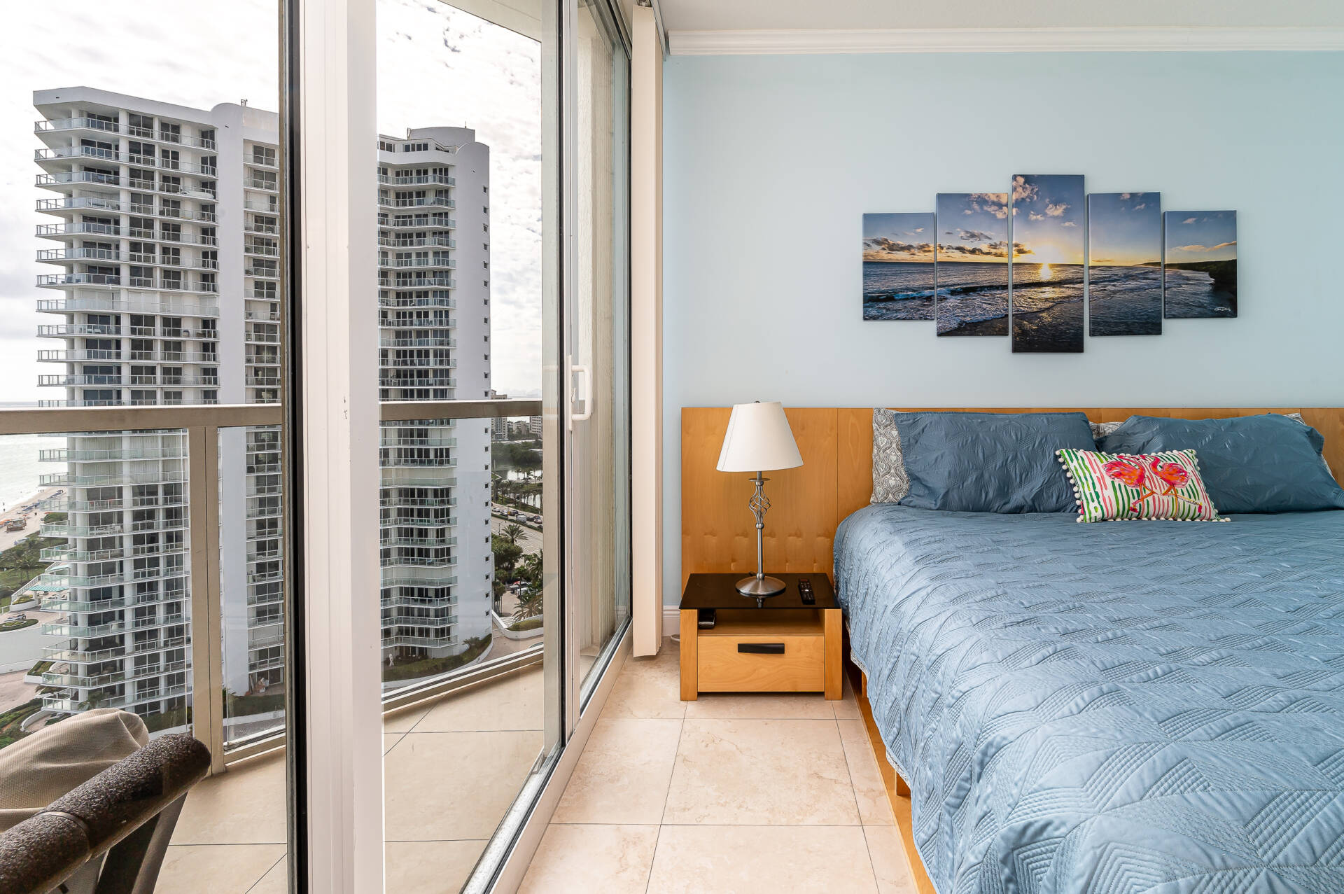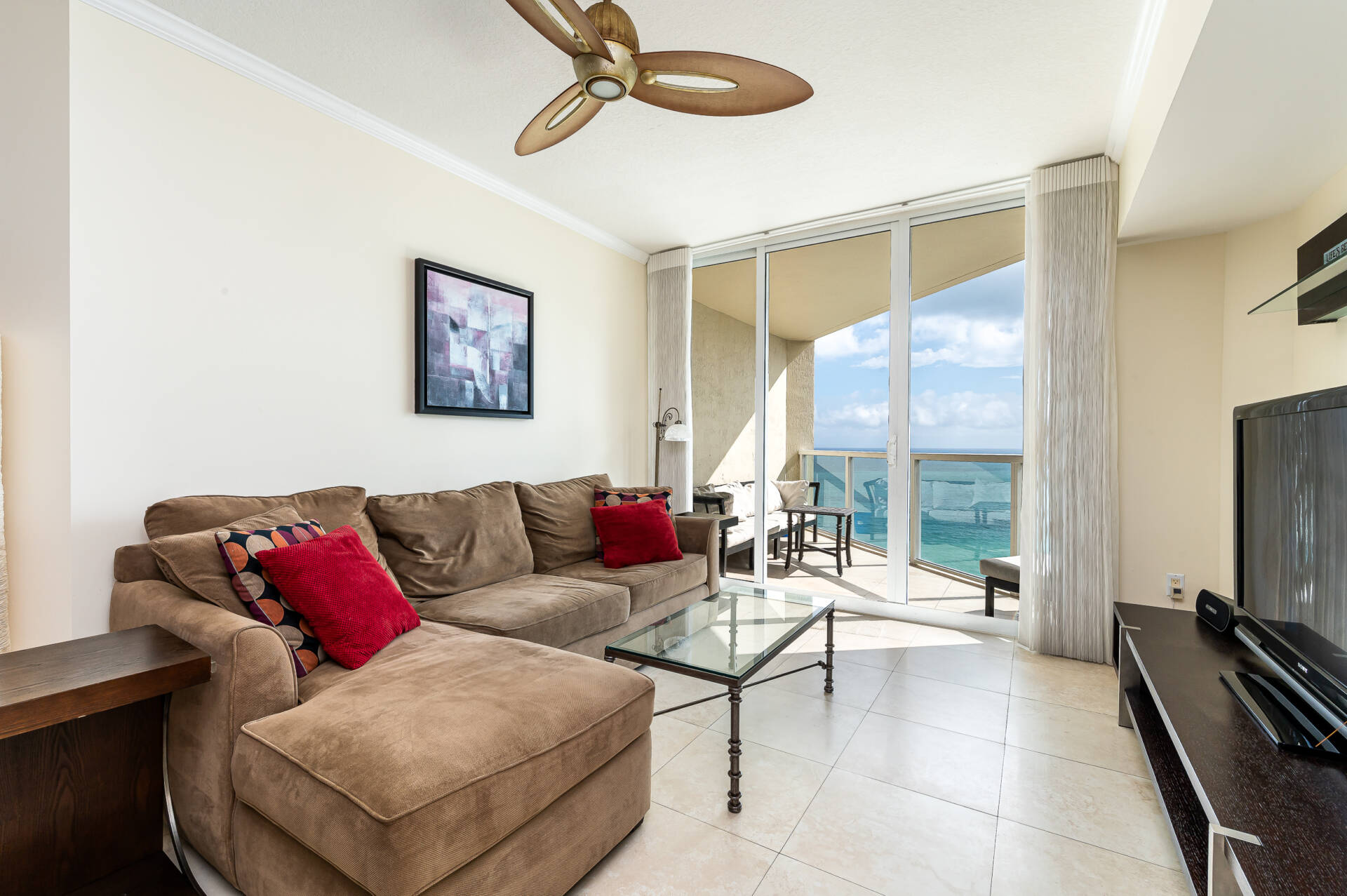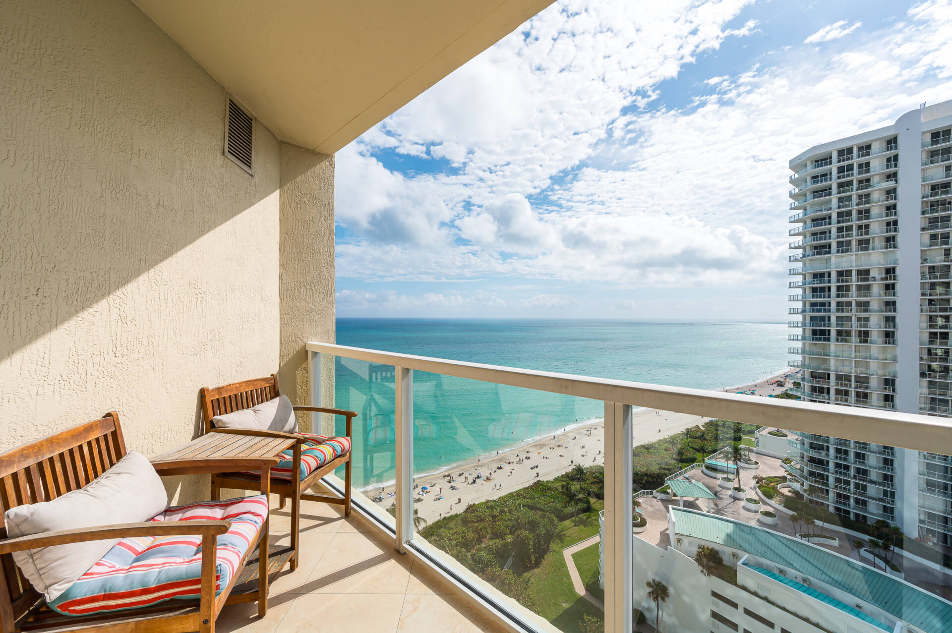 The condo is located in an ocean front building that provides top notch services & amenities. Including the following: valet parking, fitness center, private pool, kids room, club room, & beach service that includes chairs, towels, & umbrellas. La Perla is a newer built building with a great location in the city and also in relationship to things to do around Miami/Fort Lauderdale area.