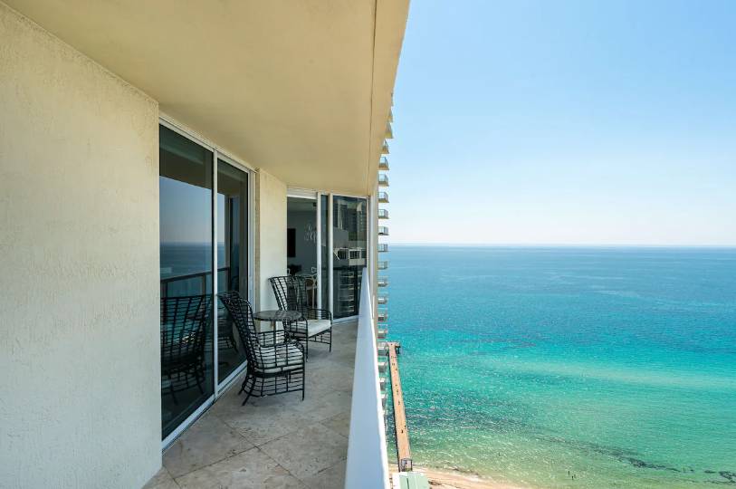 La Perla offers a gym, heated pool, business center, & game room. Rate includes Wi-Fi, basic cable, beach service which includes chairs, towels, and umbrellas. La Perla is located directly in front of a public fishing pier that features a restaurant. You can order food and drinks to the beach. Fishing poles are available for rent as well. Jet ski rentals are very close along the beach as well.