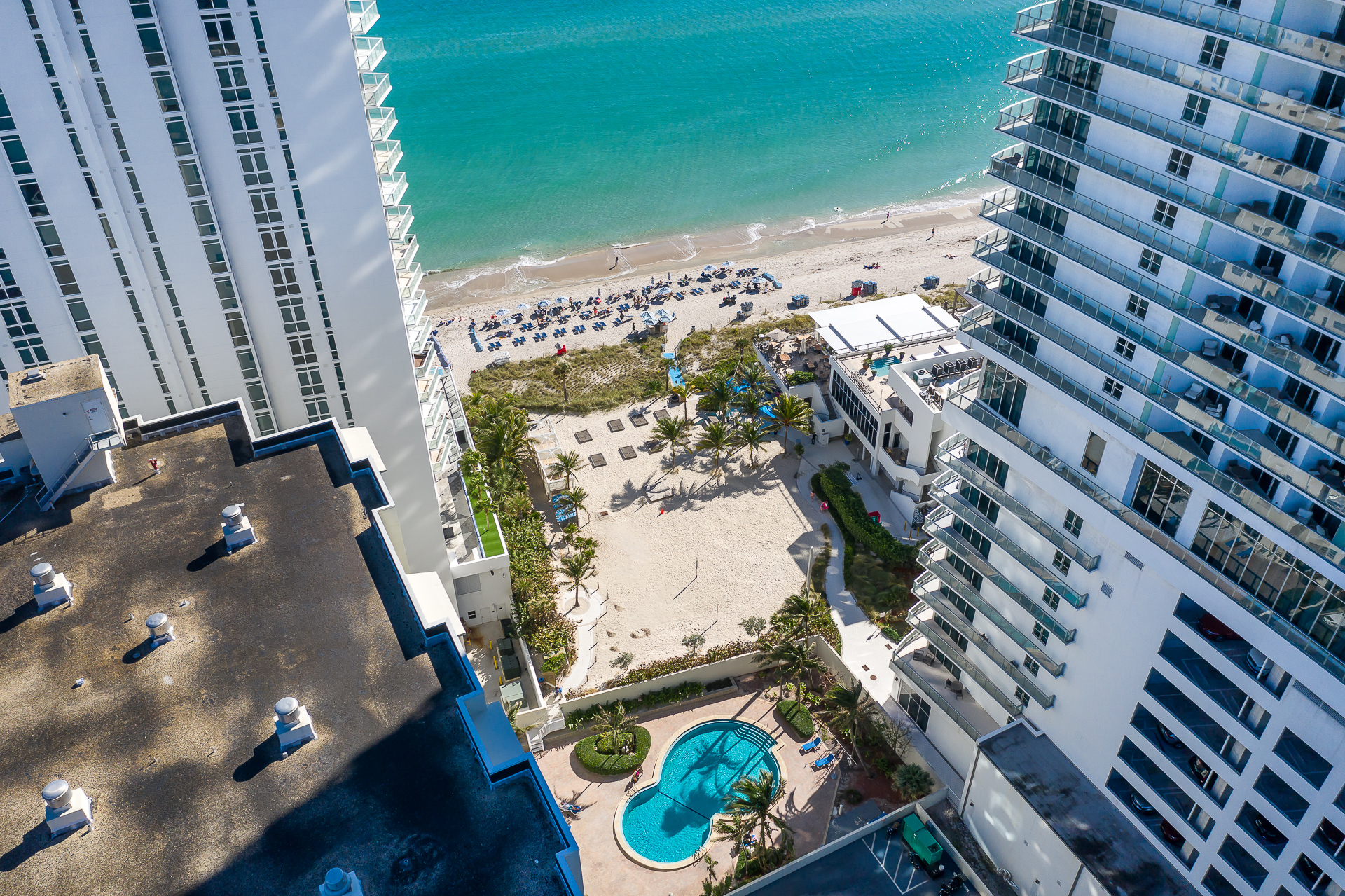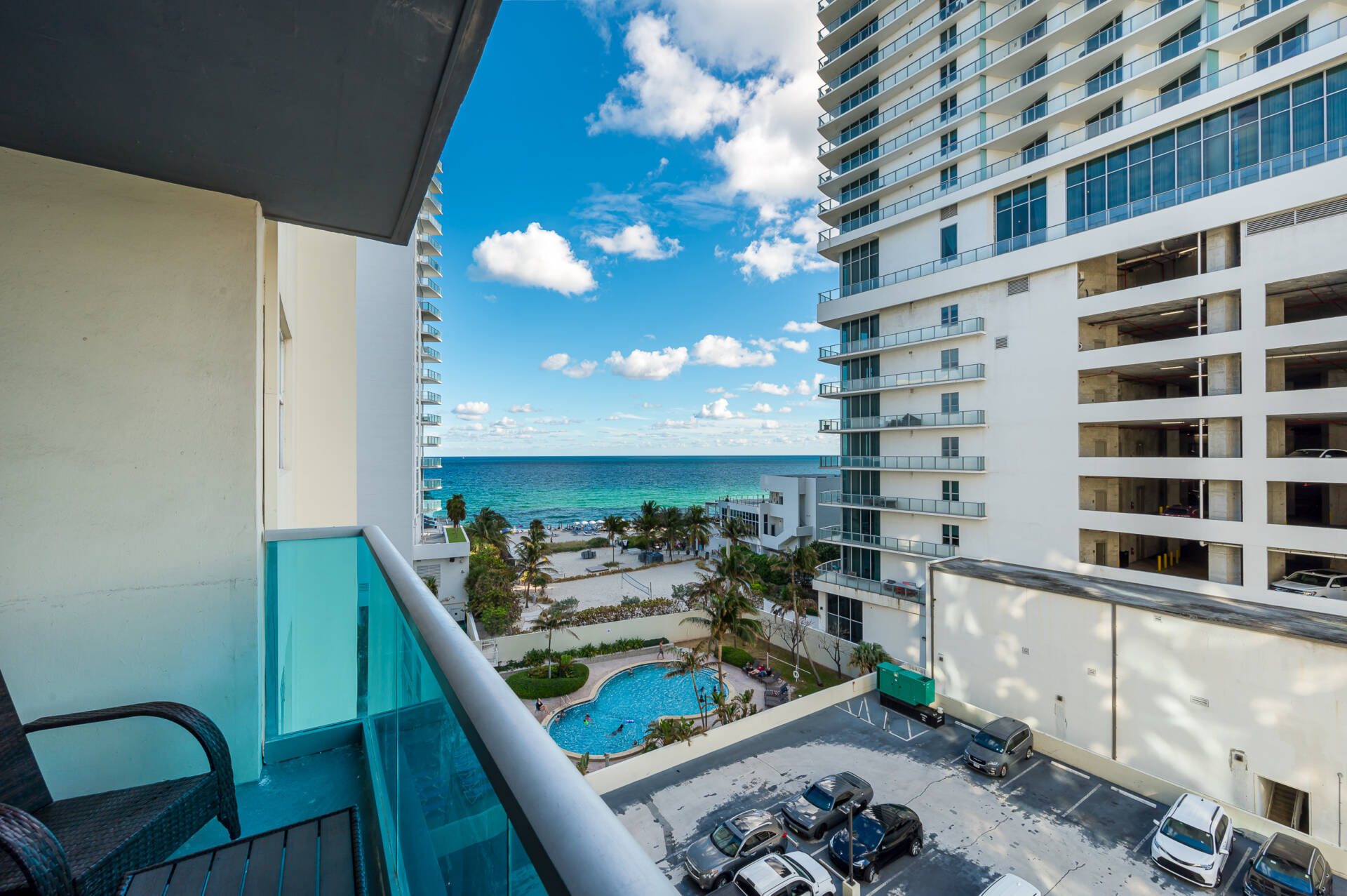 Just steps to the beach with spectacular sunrise ocean views. Spacious 2 bedroom, 2 bathroom split floor residence located on the 7th floor. Master bedroom features a king bed and on-suite bathroom. Second bedroom features 2 queen beds and on-suite bathroom. Kitchen is fully equipped for all your cooking needs. Southern exposure with tons of natural light. Cable & internet included.